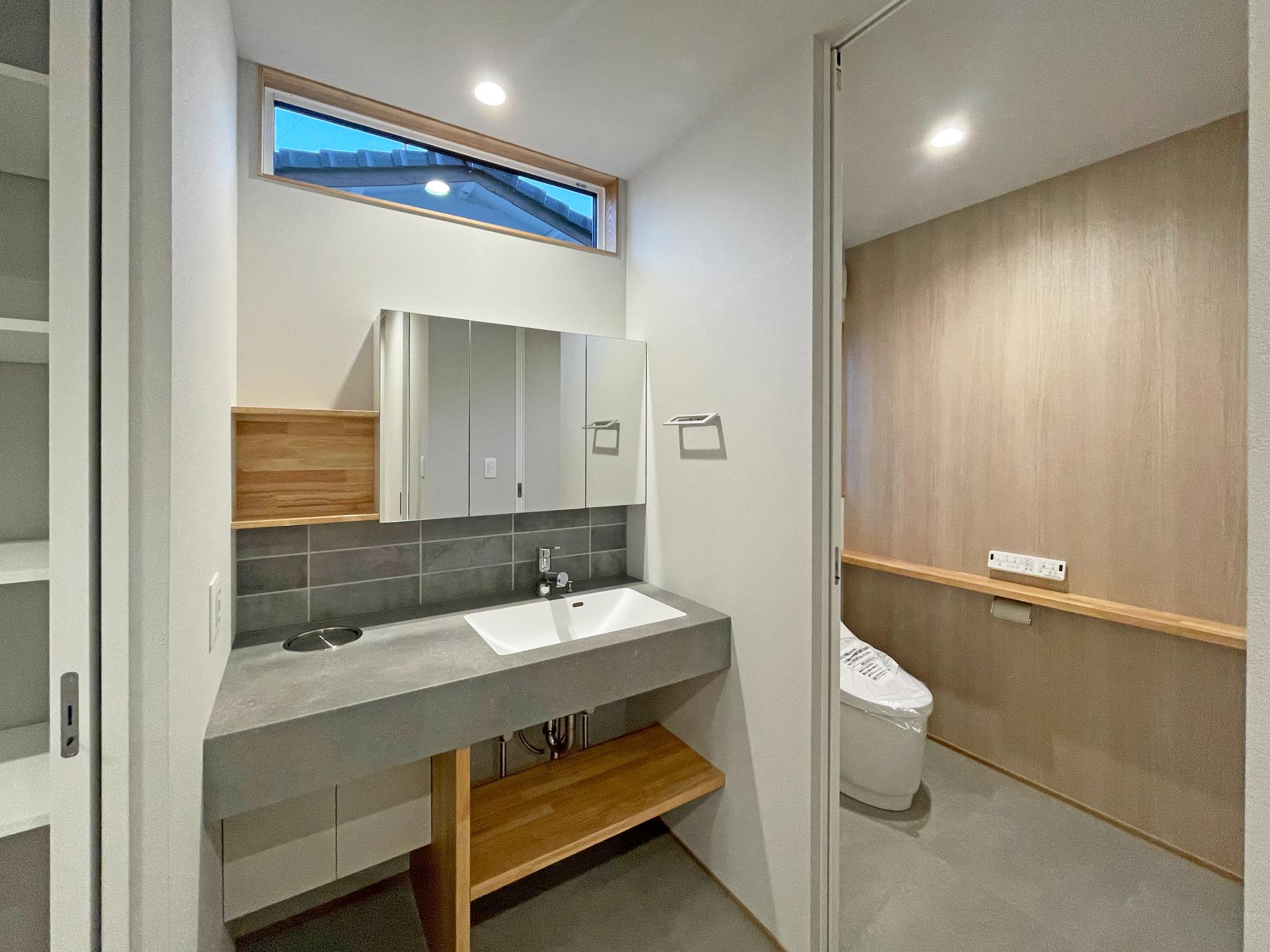 親世帯の居室は、落ち着いた色味で整えられた安らぎの和室。ミニキッチンを併設し、夜間も安心な足元灯を設置するなど、細やかな配慮が施されています。また、娘様の好みを反映した韓国テイストの二階洗面スペースなど、世代ごとの「好き」を尊重した設計にもご注目ください。