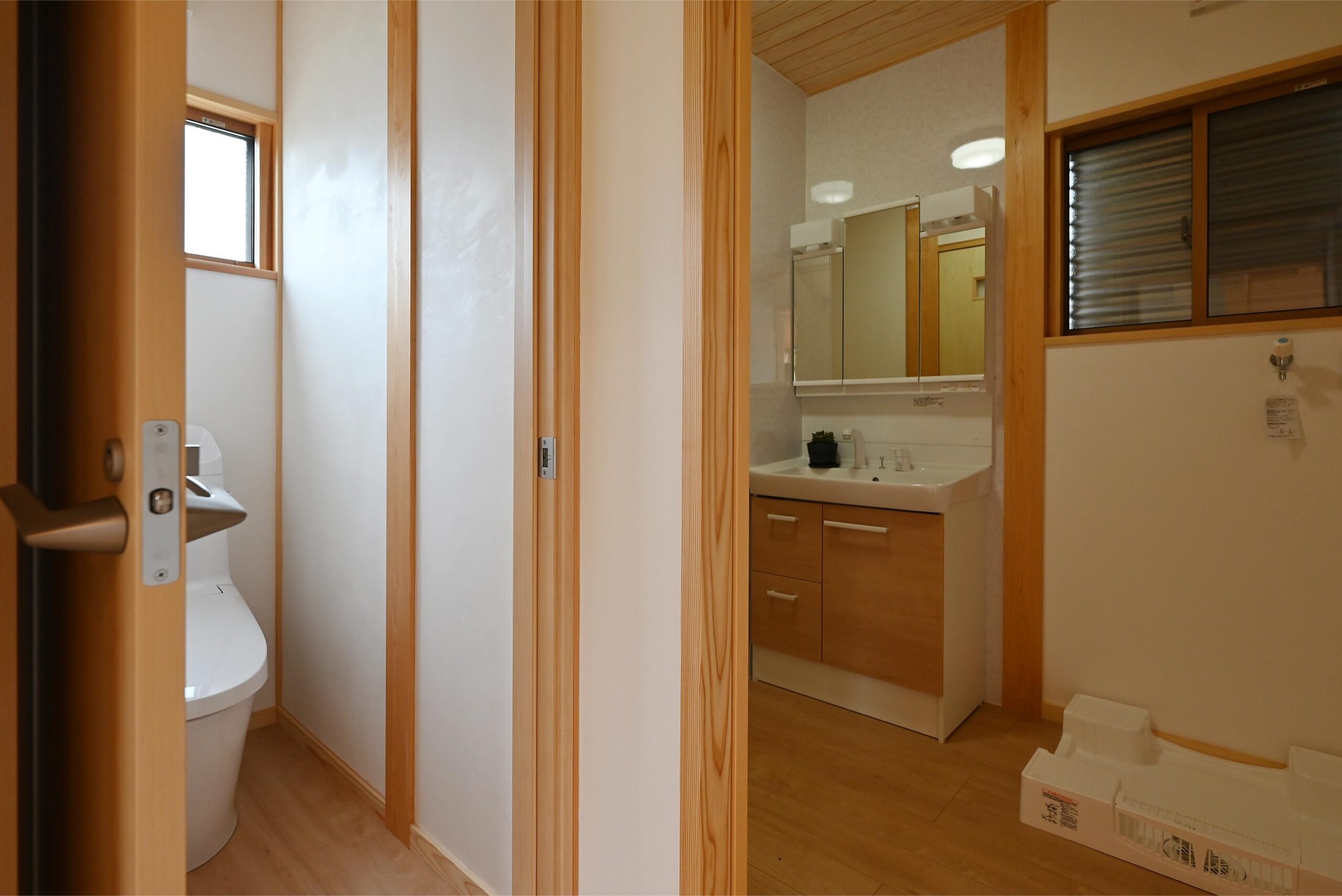 家族5人なので2階にも洗面化粧台を。右手は納戸収納になります。