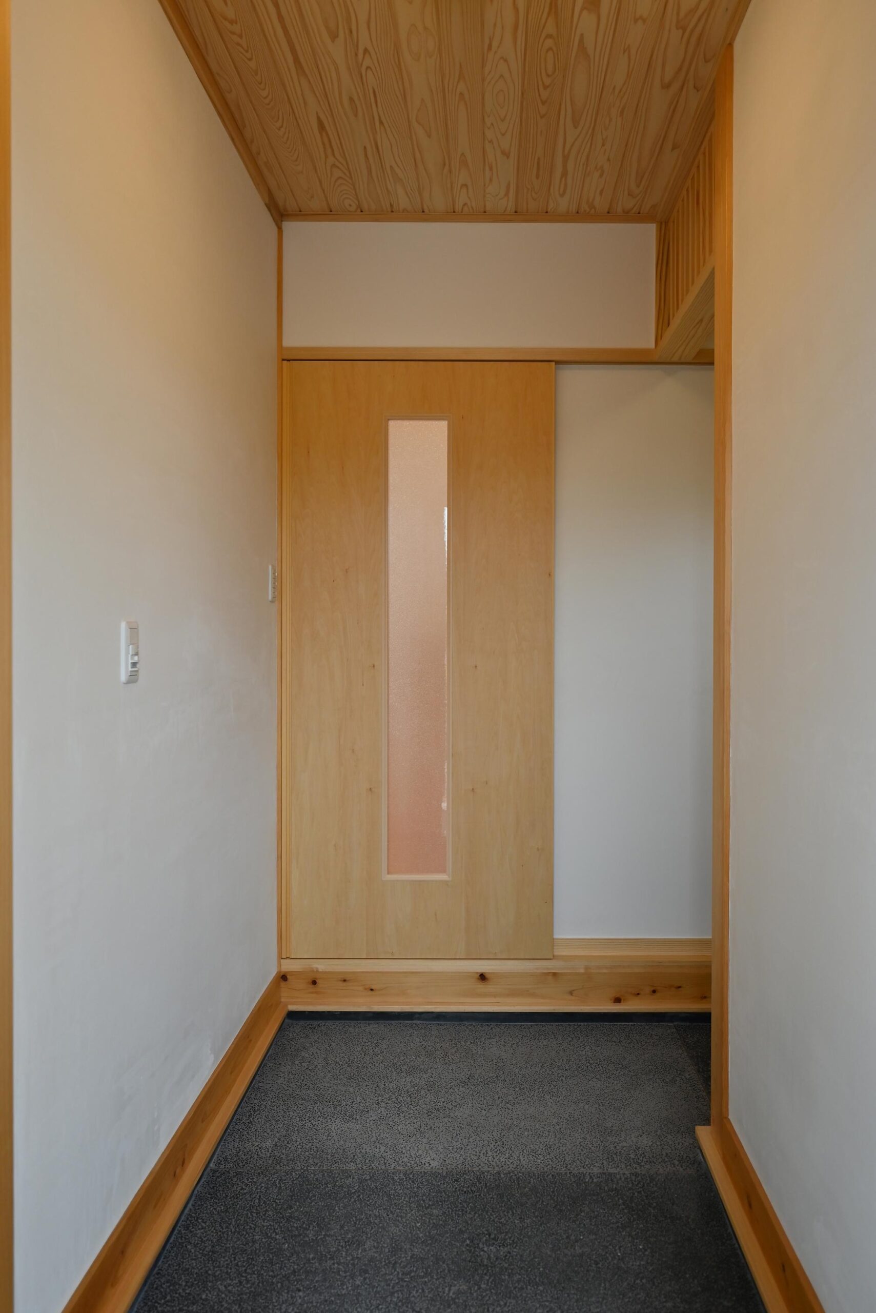 玄関を入ると和モダンと自然素材の空間へ。