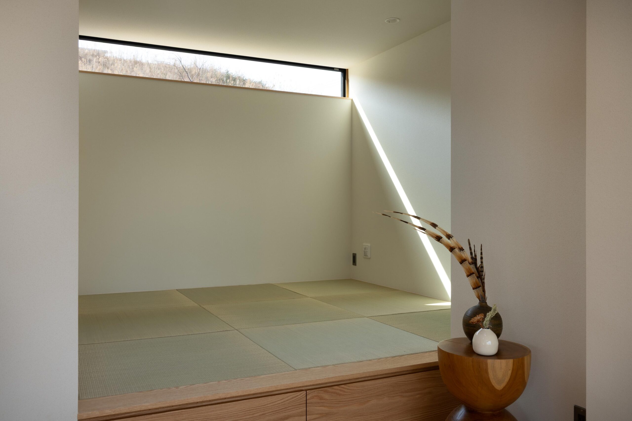 LDKに隣接する小上がり和室。小上がりの下は収納。琉球畳の張り方で市松模様に。