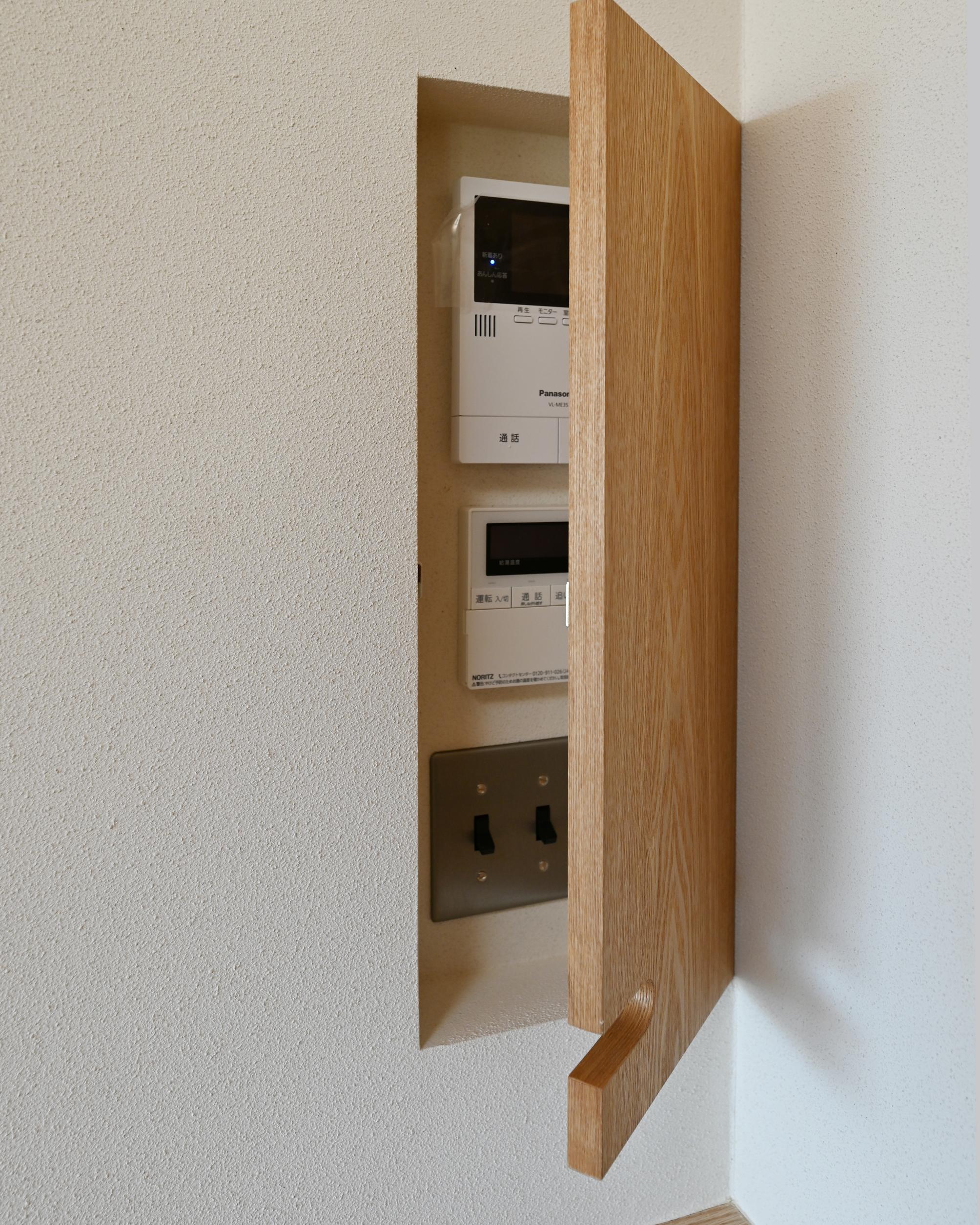 キッチンにあるリモコン類はカバーをしておめかし。メカニックなものを隠すとずいぶん印象が変わります。