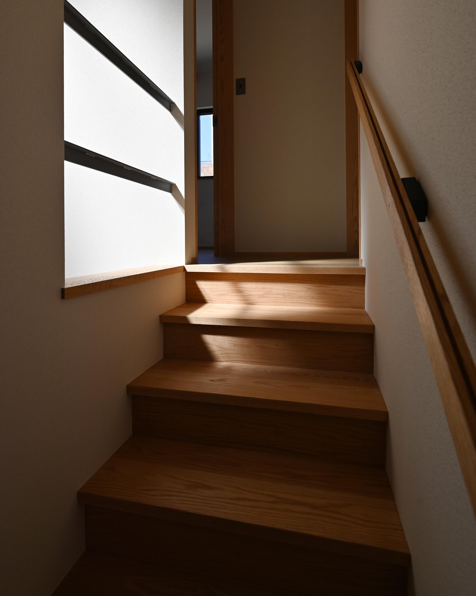 テレビ台うしろの階段。ここにもいい光が入ってますね。