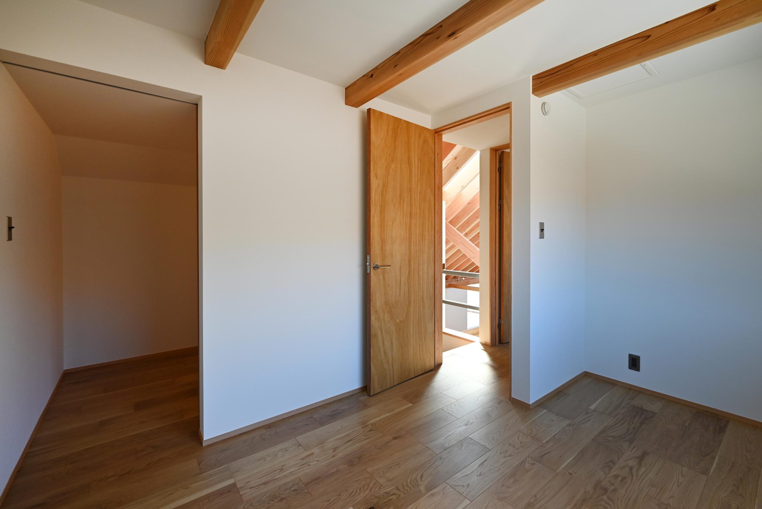 大きな屋根や、軒の深い屋根を持つ住宅は、ともすれば室内が暗くなる傾向があります。しかし、小森工務店は「大きな屋根を持ちながらも明るい住環境」を追求しました。通常の壁面からの採光に頼るだけでなく、建築の形状を巧みに操作することで生まれるハイサイドライトトップライトからの光を主体とし、穏やかな光が降り注ぐ空間を作り上げています。時間とともに移り変わる光の変化を楽しみながら、心地よい時間を過ごせるお住まいです。