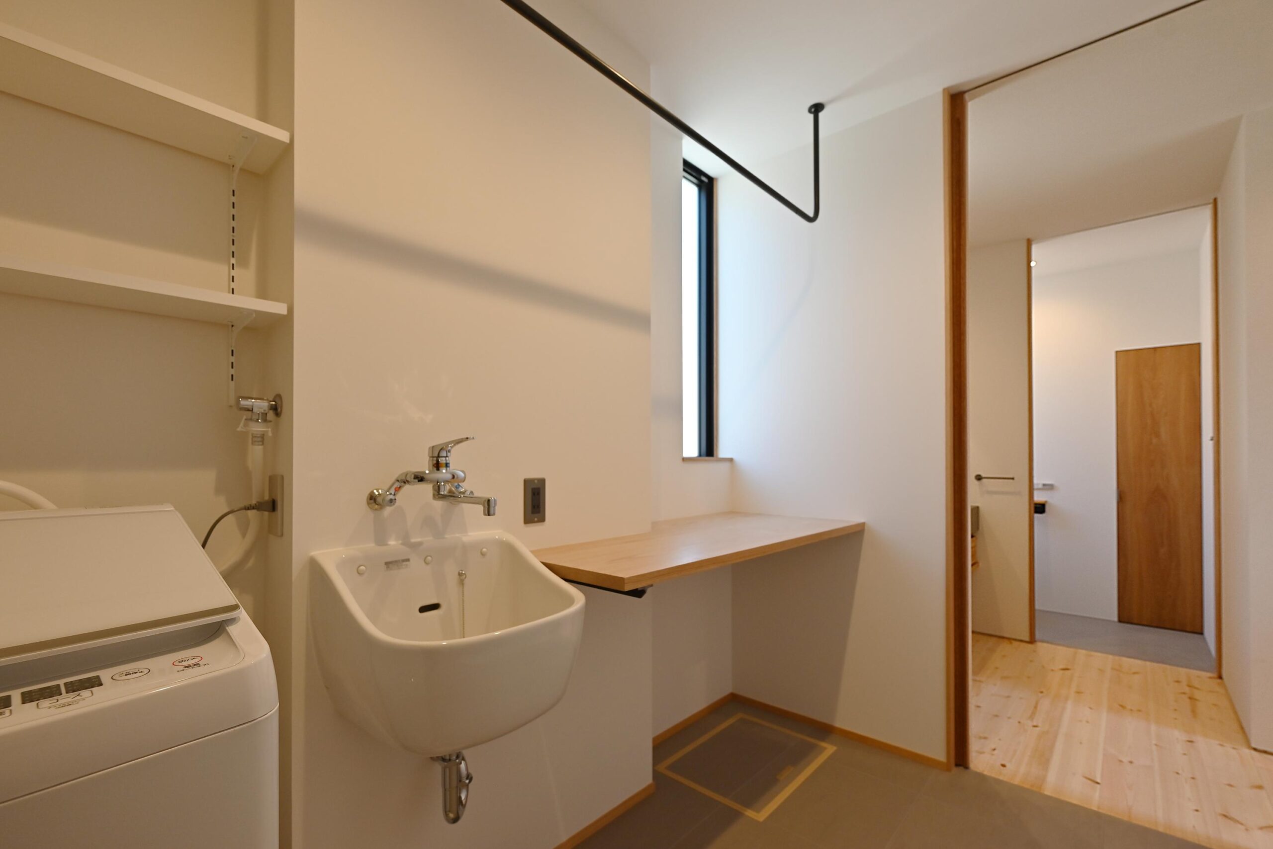スロップシンクのあるランドリールームはバスルームと洗面の間に。