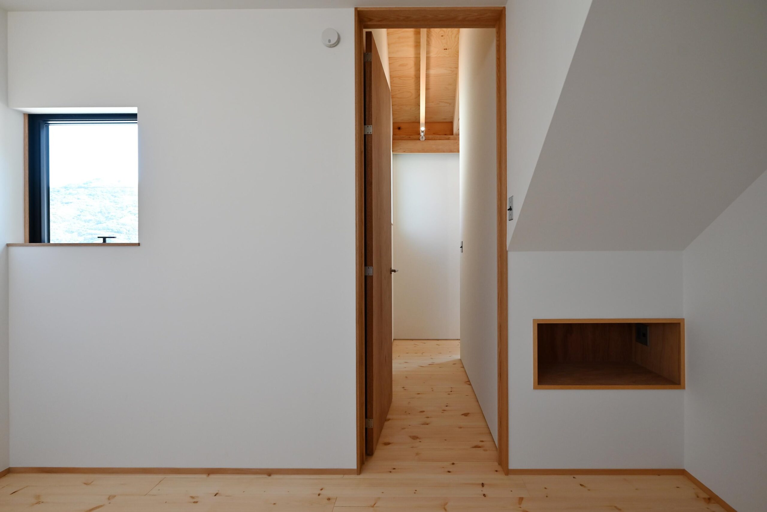 こちらは1階の主寝室。右手の穴のような棚はLDKのAV機器管理用です。