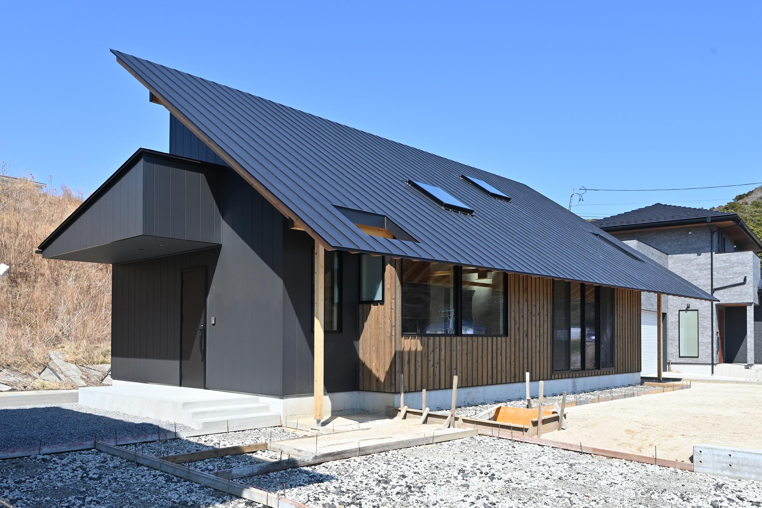 第1形態:シーサイドに佇む一見平屋の家。ガルバの大きな屋根が目印、と思いきや・・・