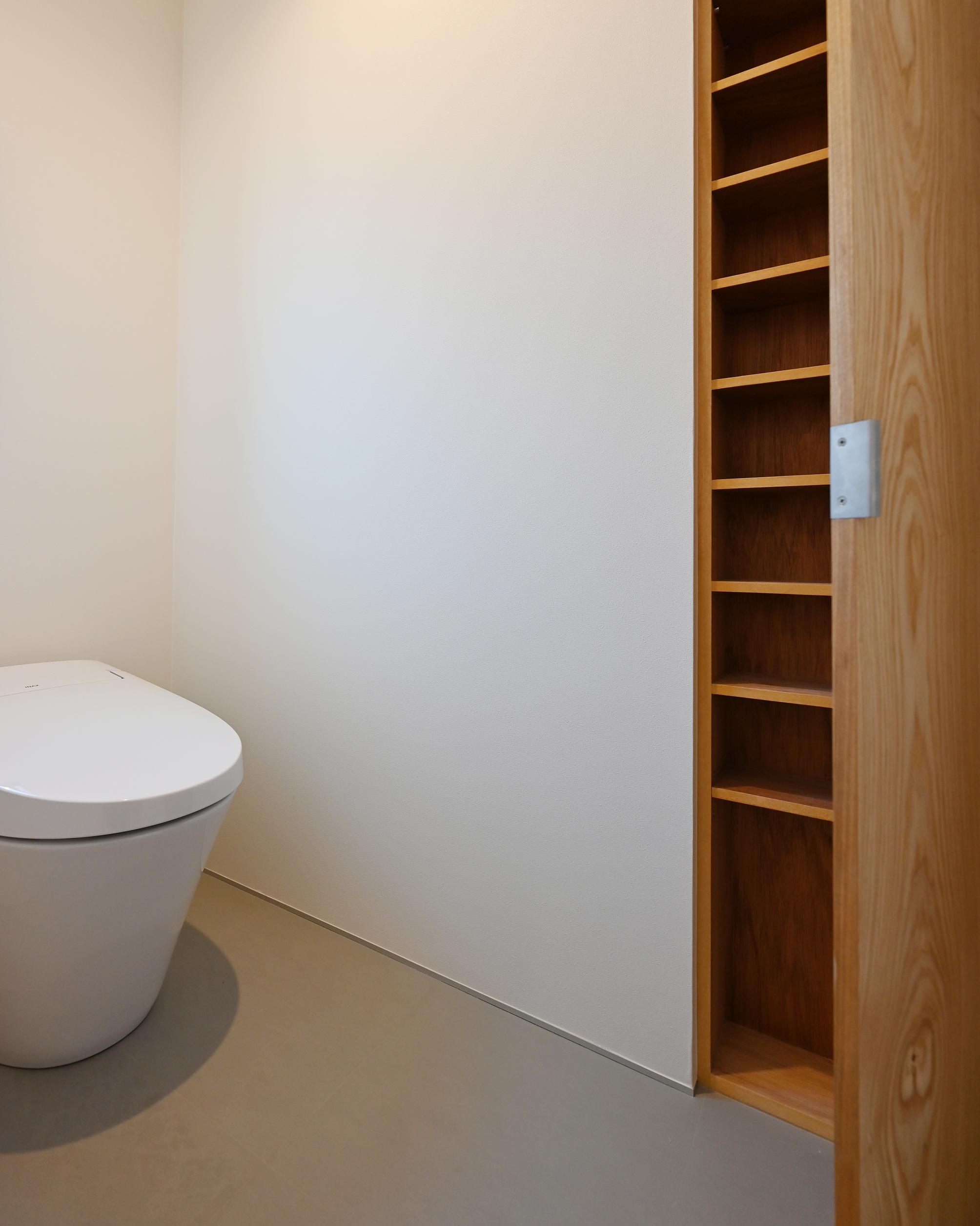 すっきりとした玄関。廻り縁と巾木を除くことで一本の線で描かれたように見えるからでしょうか。