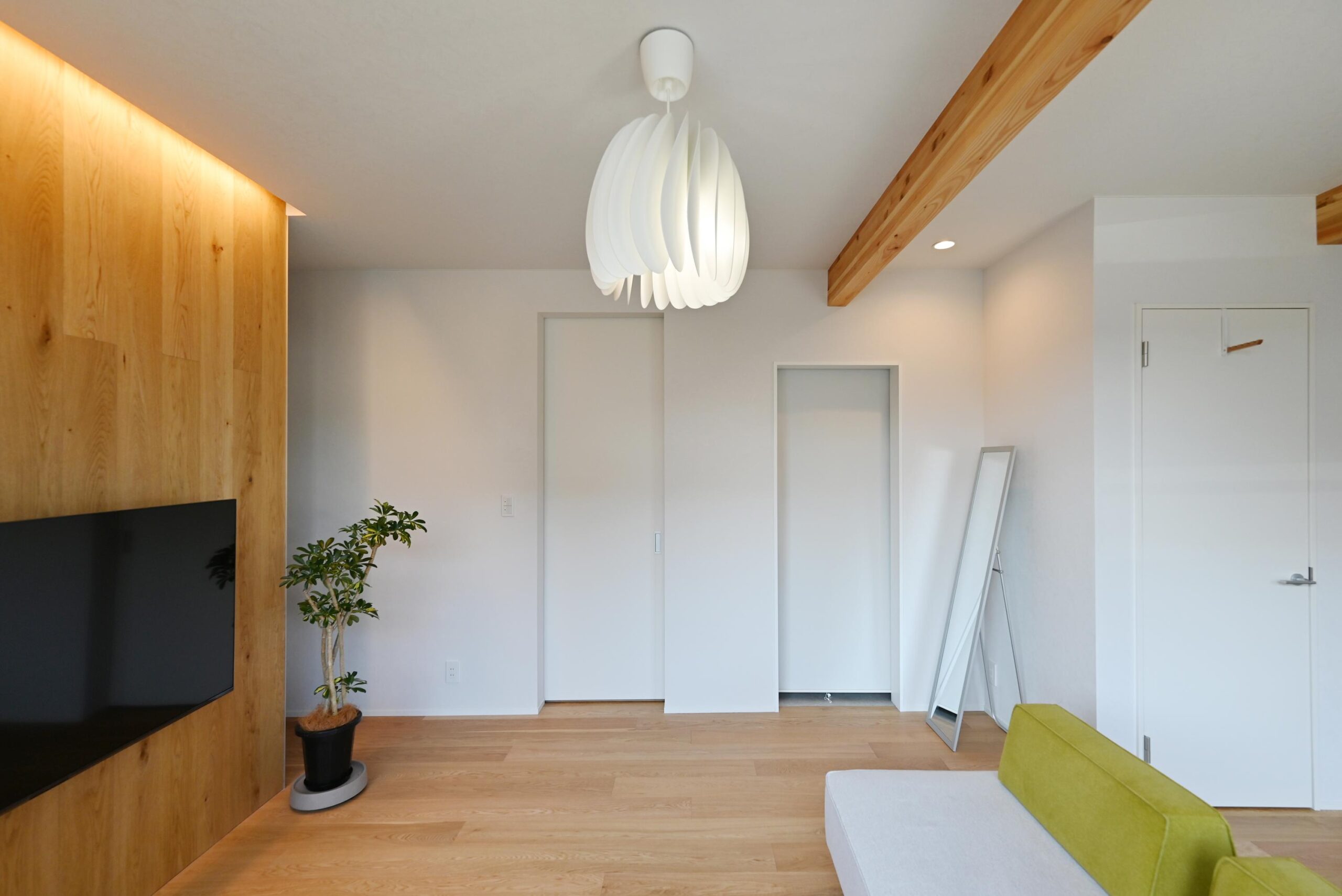 正面のテレビのある壁は裏側に技あり!