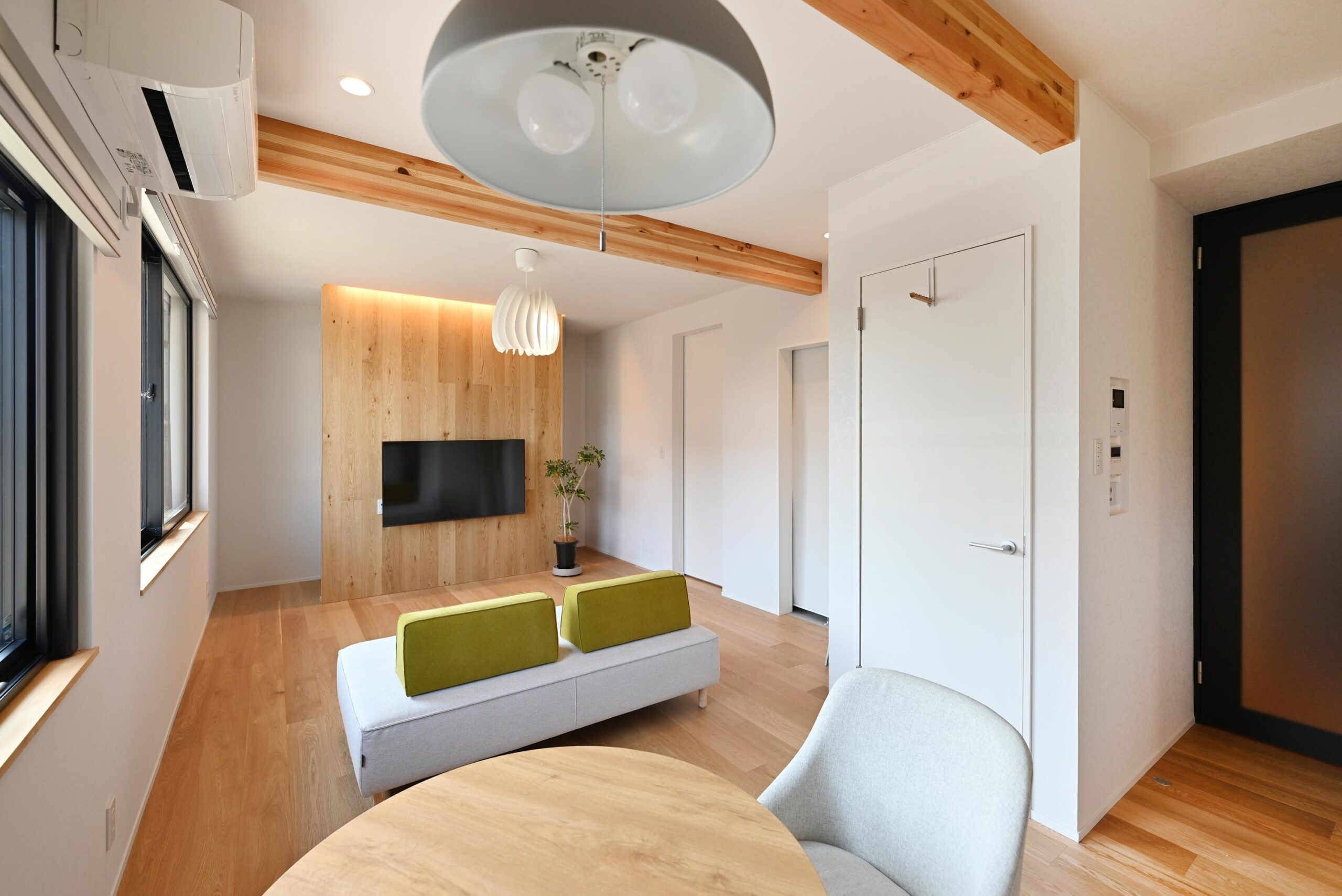 正面のテレビのある壁は裏側に技あり!