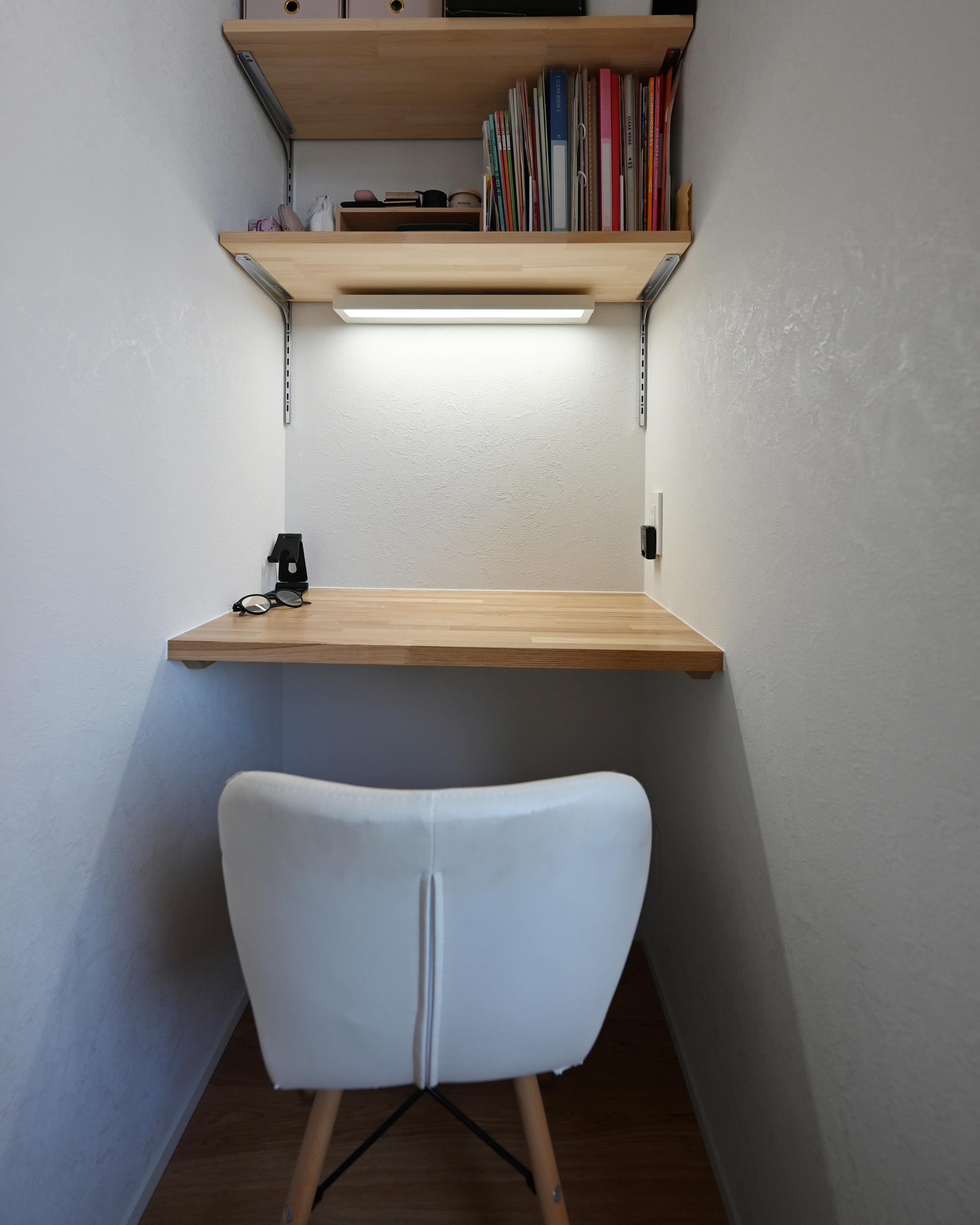 テレビ裏。こちらは奥様のプチ書斎、逆側は書類や掃除用品などの収納になっています。