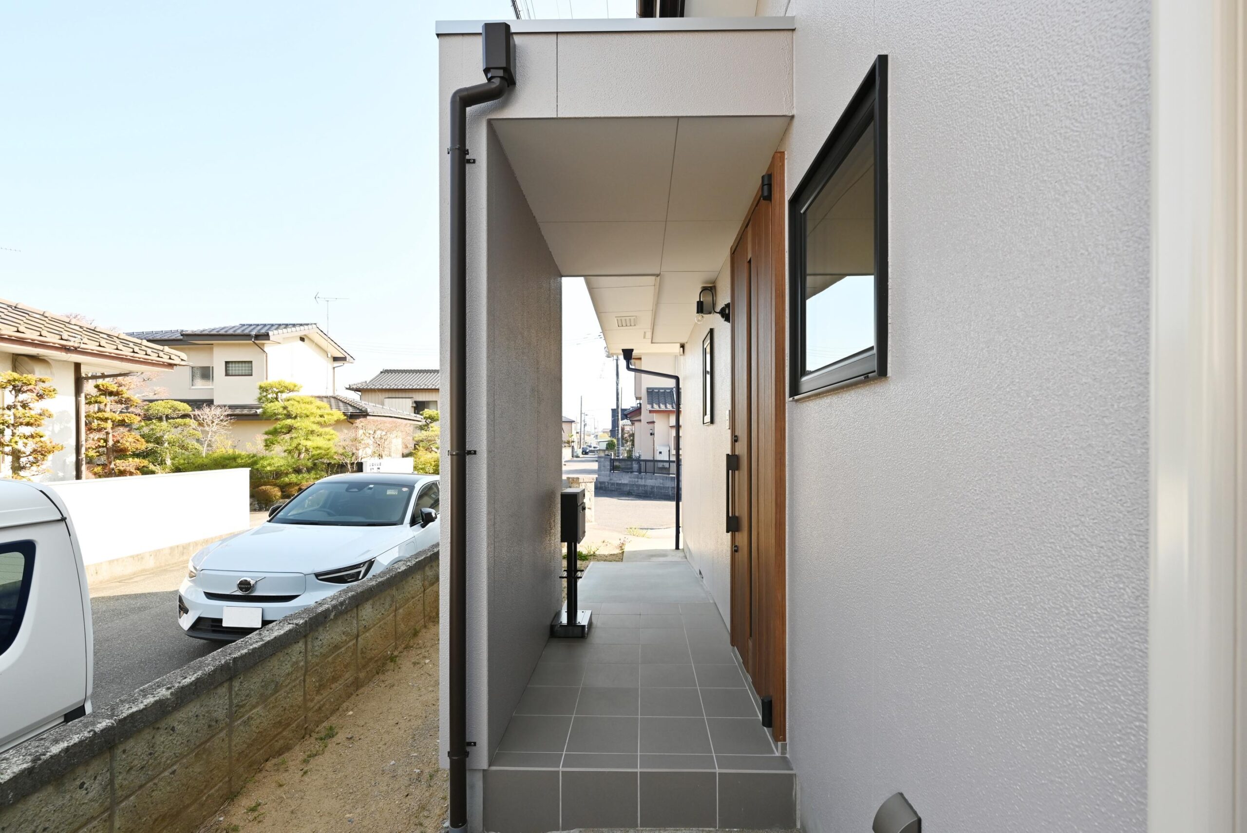 玄関を移動して、屋根付きのポーチを設けました。